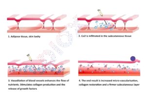 Carboxytherapy uses micro-injections to infuse gaseous carbon dioxide (a natural compound in the body) into the subcutaneous or dermal tissue.
