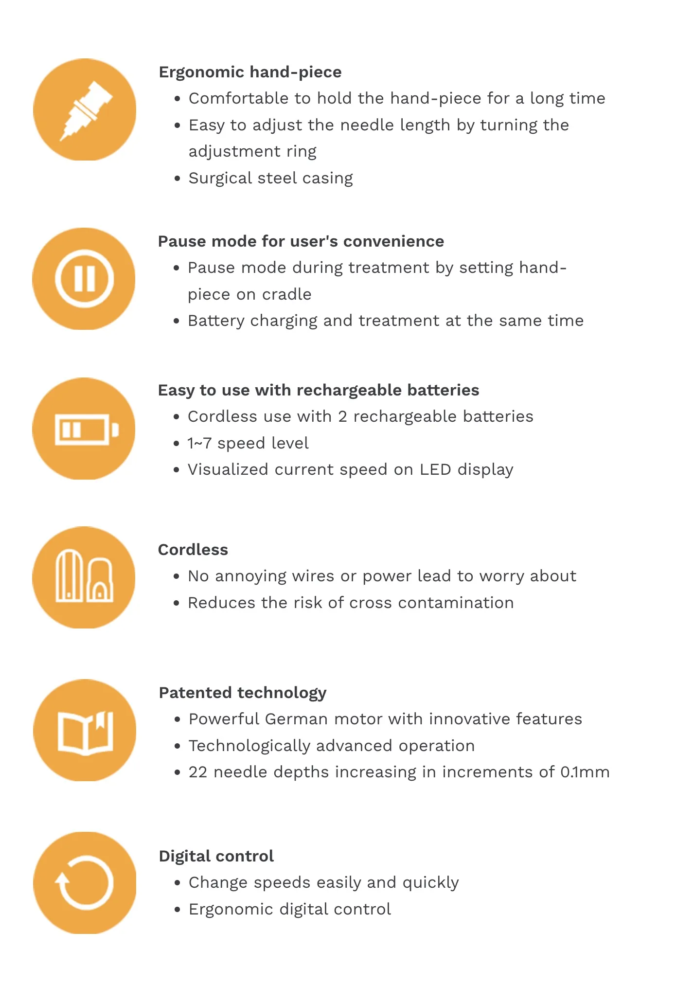 The Derma Pro utilises a powerful German motor that fully retracts the needles before reinsertion, rather than relying on a spring mechanism, reducing trauma and providing optimal results. Indications include: