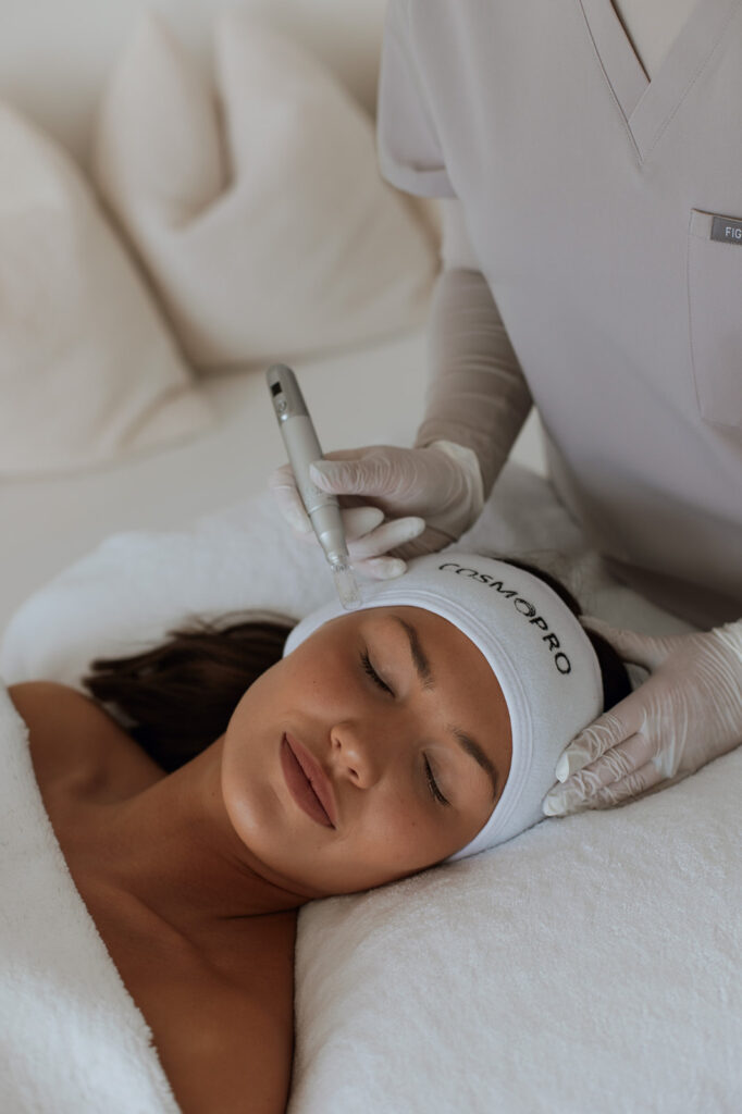 Microneedling is typically performed with a device like a dermapro and can be used as a standalone treatment or combined with serums and other modalities.
