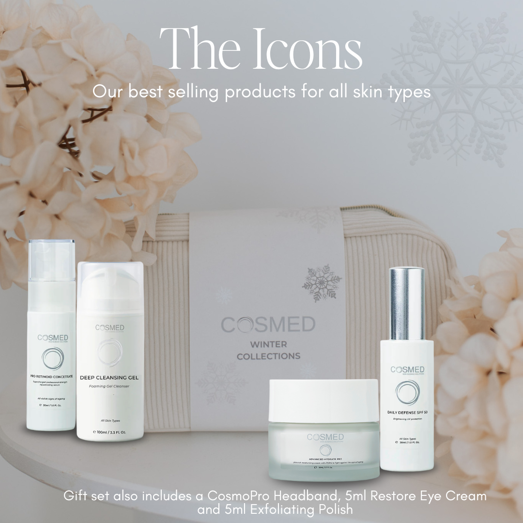 Gift set also includes a CosmoPro Headband, 5ml Restore Eye Cream and 5ml Exfoliating Polish